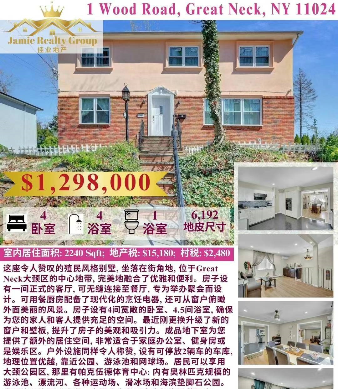 位于大颈村的殖民地风格住宅,拥有6192平方英尺的占地面积,建于1959年,年地税$17,660,室内使用面积为2240平方英尺。这处房产地理位置极佳,紧邻各种生活设施。室内光线充足,共三层,铺设精美木地板,包含一间正式客厅、餐厅、厨房、4个宽敞的卧室以及4.5个浴室。6个停车位,其地理位置无比优越,近邻公园、游泳池和网球场。居民还能享受大颈公园区提供的各项设施,如帕克伍德体育综合设施,该设施配备了奥林匹克级别的游泳池,各类体育场、冰上滑冰场以及海滨阶石公园。此外,该住宅还归属于JFK小学、大颈北中学和高中学区,为孩子提供优质教育资源