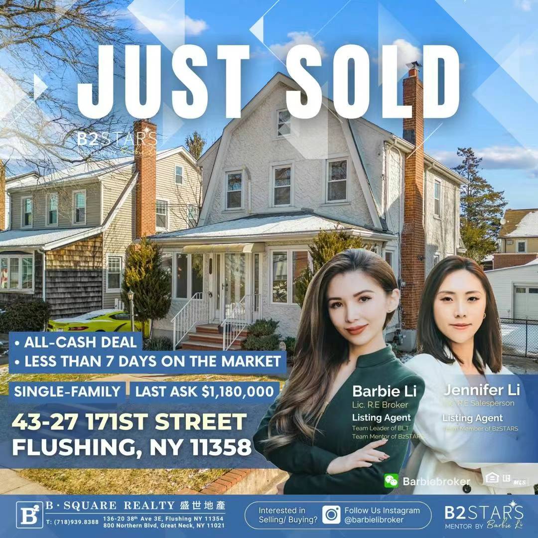 别的当地老外经纪代理半年未内售出,我们团队接手后 重新定位 包装 推出市场!针对对的客户群体!顺利拿到多个出价!最后卖给了和屋主同个国家俄罗斯同个村还没来美国就认识的朋友!通过我团队的Marketing渠道,高效配对对应的客户就是那么🐂#barbieliteam @B Square Realty 恭喜@Jennifer #B2stars 秒卖的北法拉盛一家庭秒全现金过户啦 我们还有大量的北法拉盛买家还在找房 欢迎卖家们委托!免费估价