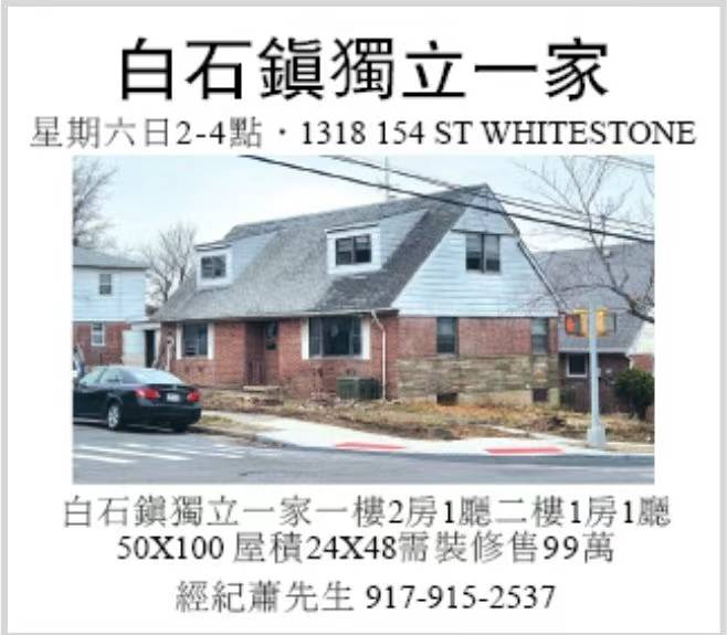 白石镇13-18 154 街 Lot 50x100 街角, 需装修建商或投资首选