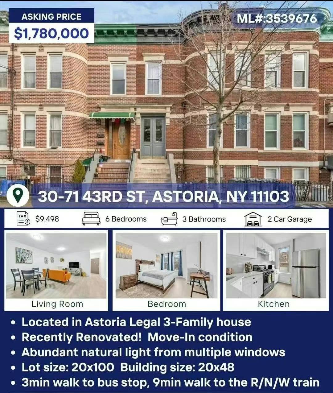 🟠Astoria 合法3家庭,全装新修,随时入住