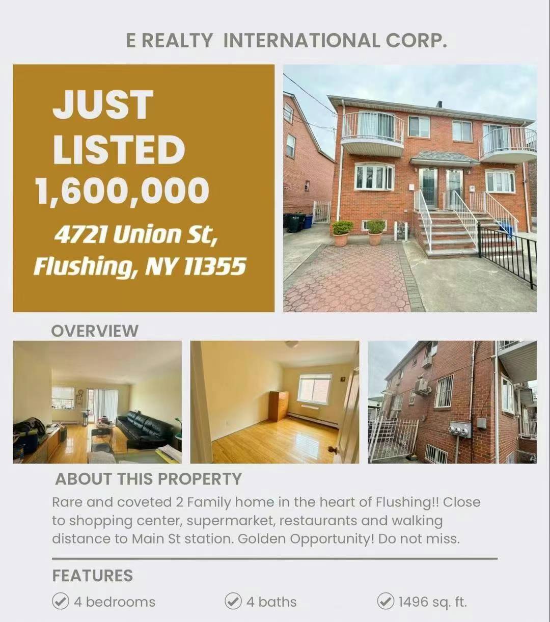 法拉盛黄金地段金城发超市走路3分钟,