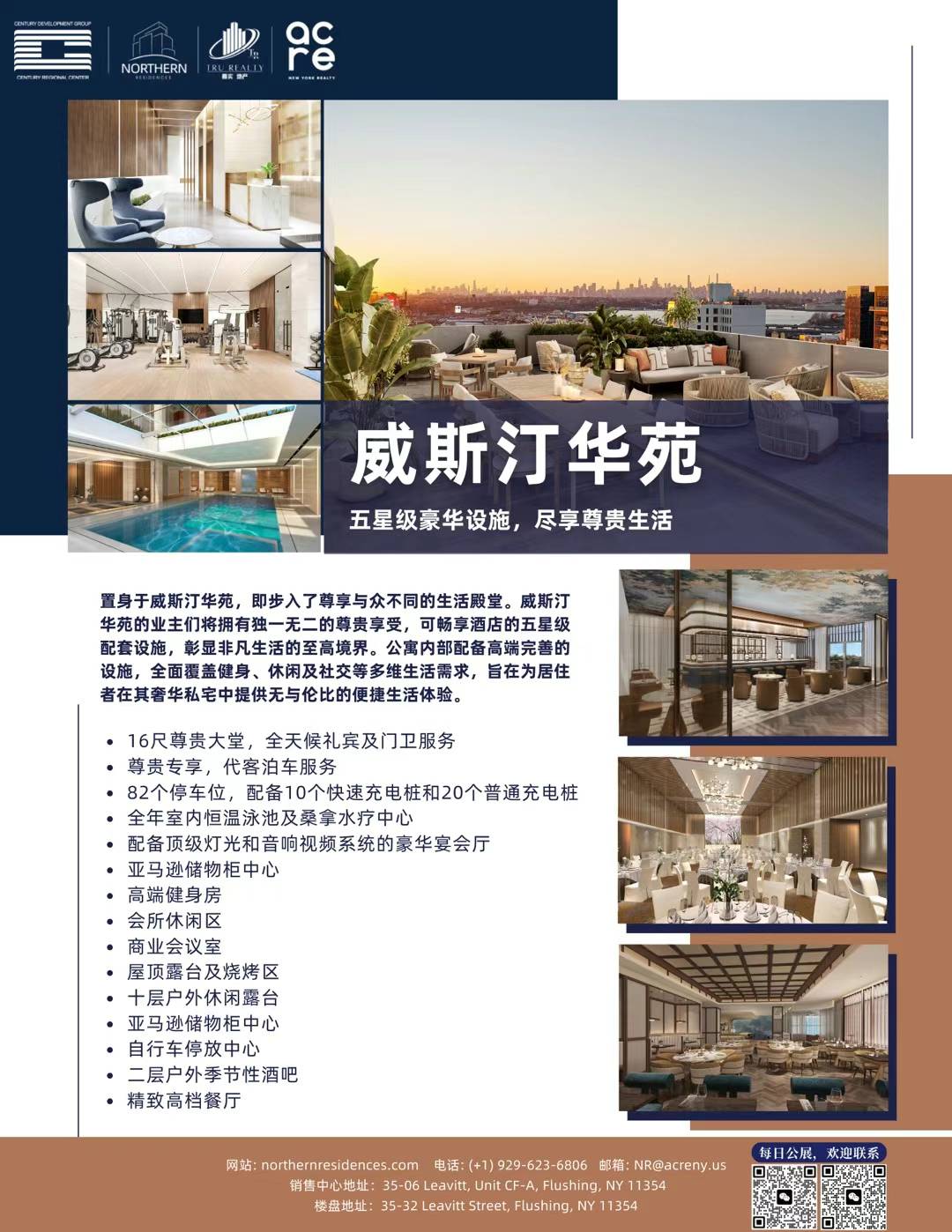 位于在皇后区第一家五星级酒店Westin之上,尽享尊贵生活体验,大楼仅有48户住宅,确保高度私密性,配备三层落地大窗,供您尽情欣赏无与伦比的景观。