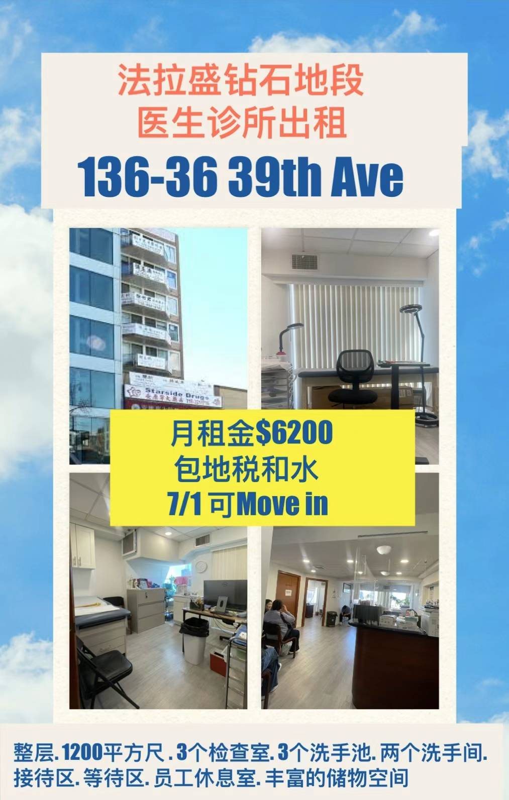 整层月租金仅仅$6200。 与房东直接签新合约!欢迎医疗/医美/医生 入驻!详情🔎