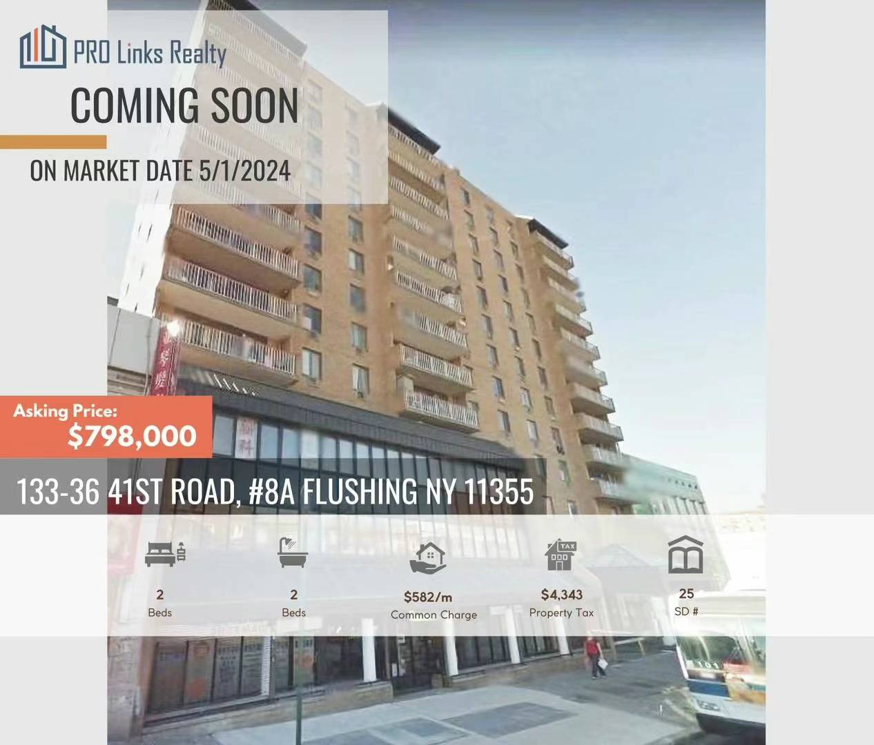 Mains St & 41 Road(图书馆对面)2房2浴,900尺,大阳台,24小时门卫,保养好,公寓内有洗衣机和烘干机。可做3房