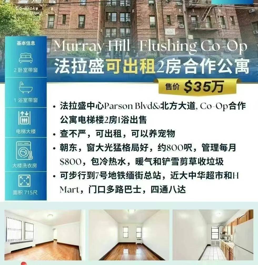 🔹朝东,窗大光猛格局好,约800呎,管理每月$800,包冷热水,暖气和铲雪剪草收垃圾