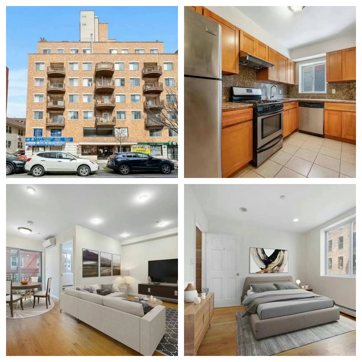 大樓地理位置一流、 鬧中取靜、步行街角商業區、 餐廳、 麵包店、 超市等。 超過5條巴士線路直達面街! 或可步行5分鐘達法拉盛圖書館! $59万9