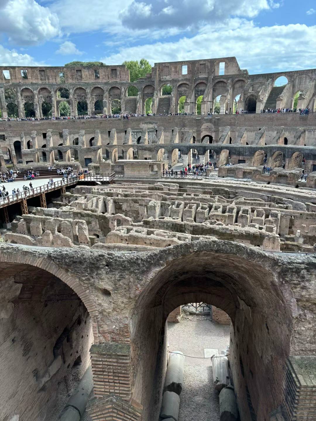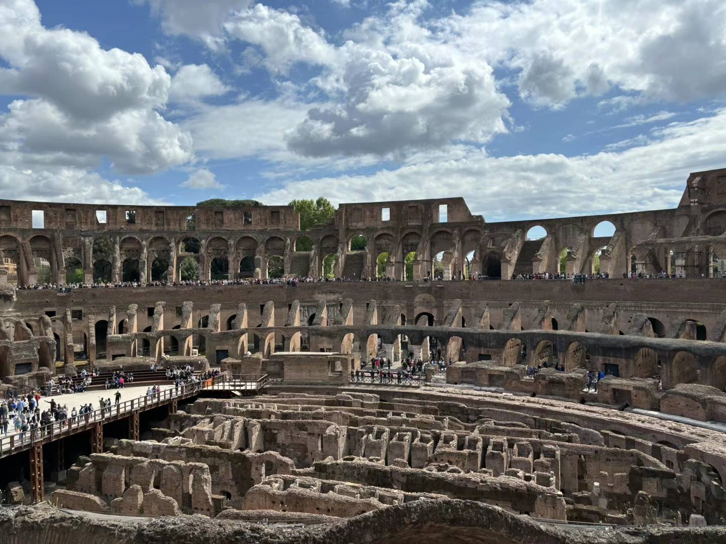 罗马广场我们打卡罗马競技場始建於公元前 80 年,當時是罗馬帝國最大的露天圓形劇場,至今仍屹立不搖,訴說著宏偉和野蠻並存的過去。罗馬競技場位於梵蒂岡東南方 20 分鐘路程,曾是格鬥士展開生死對決、狩獵野生動物和鬥獸的著名場所,这里每天吸引着成千上万世界各地的游客参观游览。