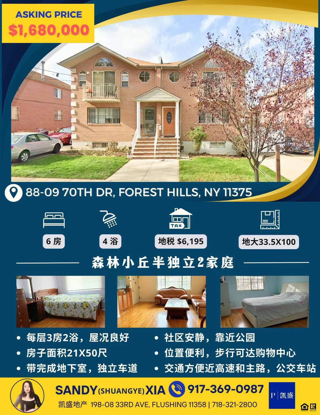 🔵共2层,每层3房2浴,屋况良好,带完成地下室,独立车道