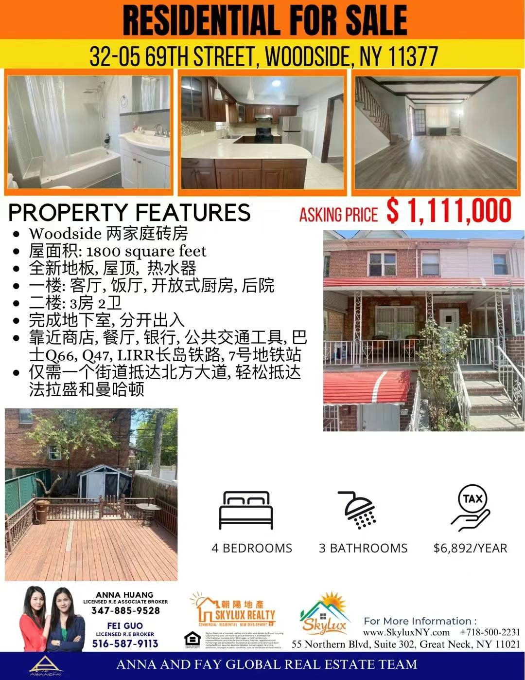 步行即可到達商店、餐廳、銀行和公共交通路線,如Q66、Q47 長島火車、7號地鐵🚇 距離Northern Blvd僅條街