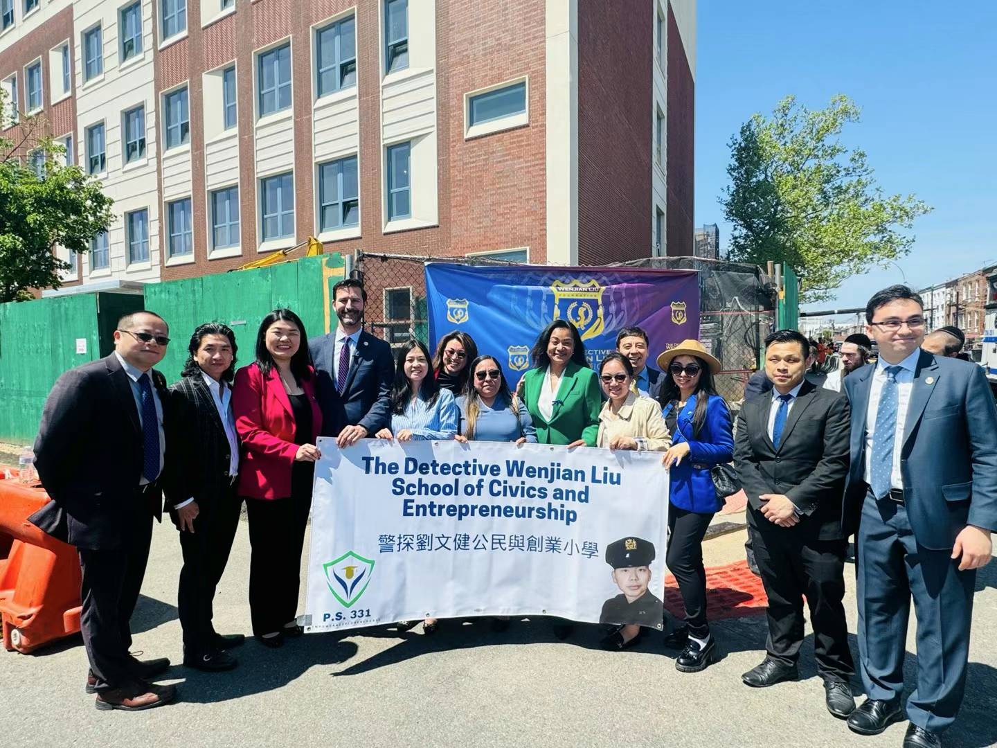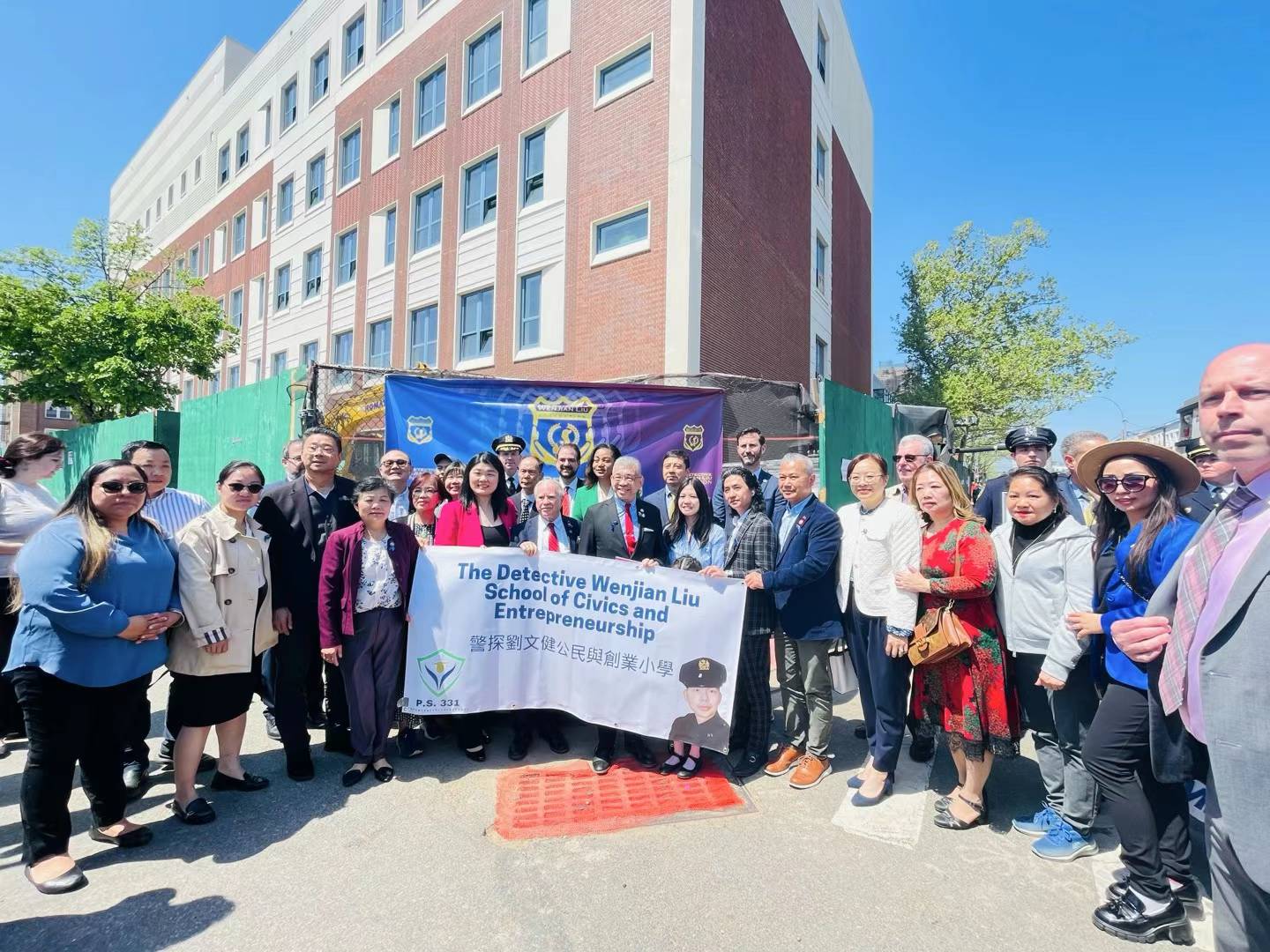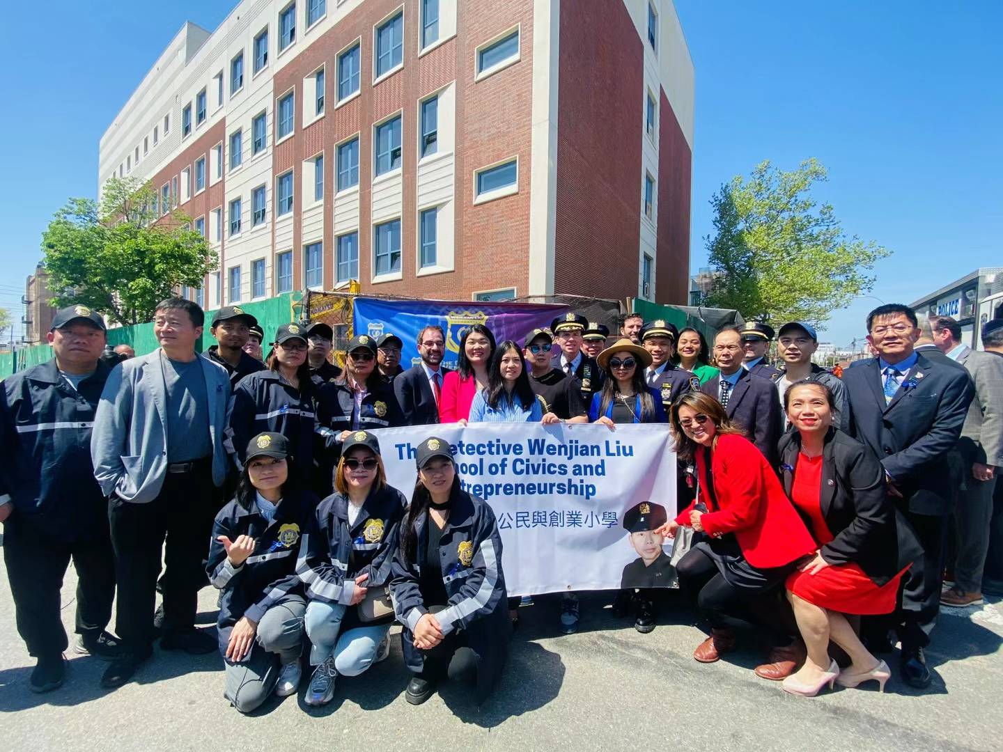 5月2日早上11点在13大道和63街交界处 出席人员:刘家家属,警察局长,市议员庄文怡,校长,纽约市长,教育局局长、州众议员郑永佳州、以及我们联合会等等各位领导侨领们都前来支持!