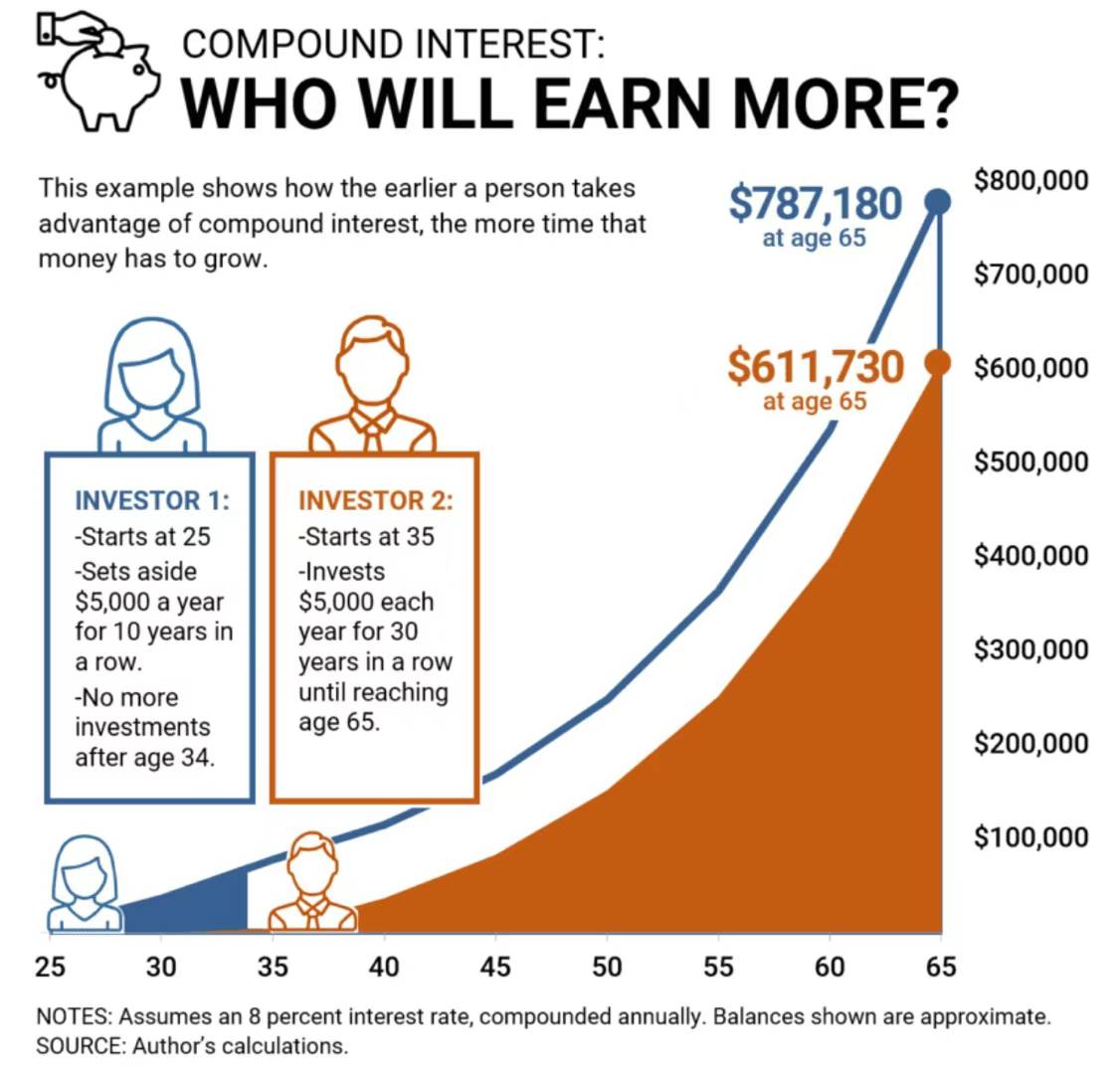 投资的秘密是时间➕复利。投到好的复利公司或者项目,然后等!所以不是有了钱才投资,而是越早投资越好。当然,也就越长命越有钱