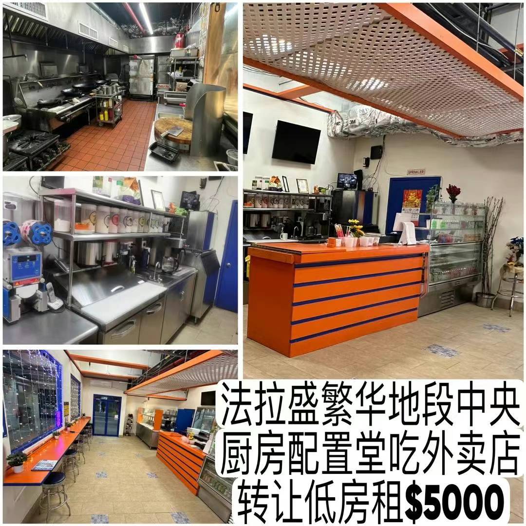 面积1000多尺,房租5000(包地税,管理费)。店是完整中央厨房配置,仅是步入式大冷库就有3个。厨房设备应有尽有。烤炉,蒸箱,烘炉,油炉;和面机,压面条机,发酵箱,微波炉;还有两种切片机,绞馅机;制冰机,咖啡机,奶茶封盖机,崭新的做奶茶、果茶的专用码柜等等。特别适合兼营奶茶店。