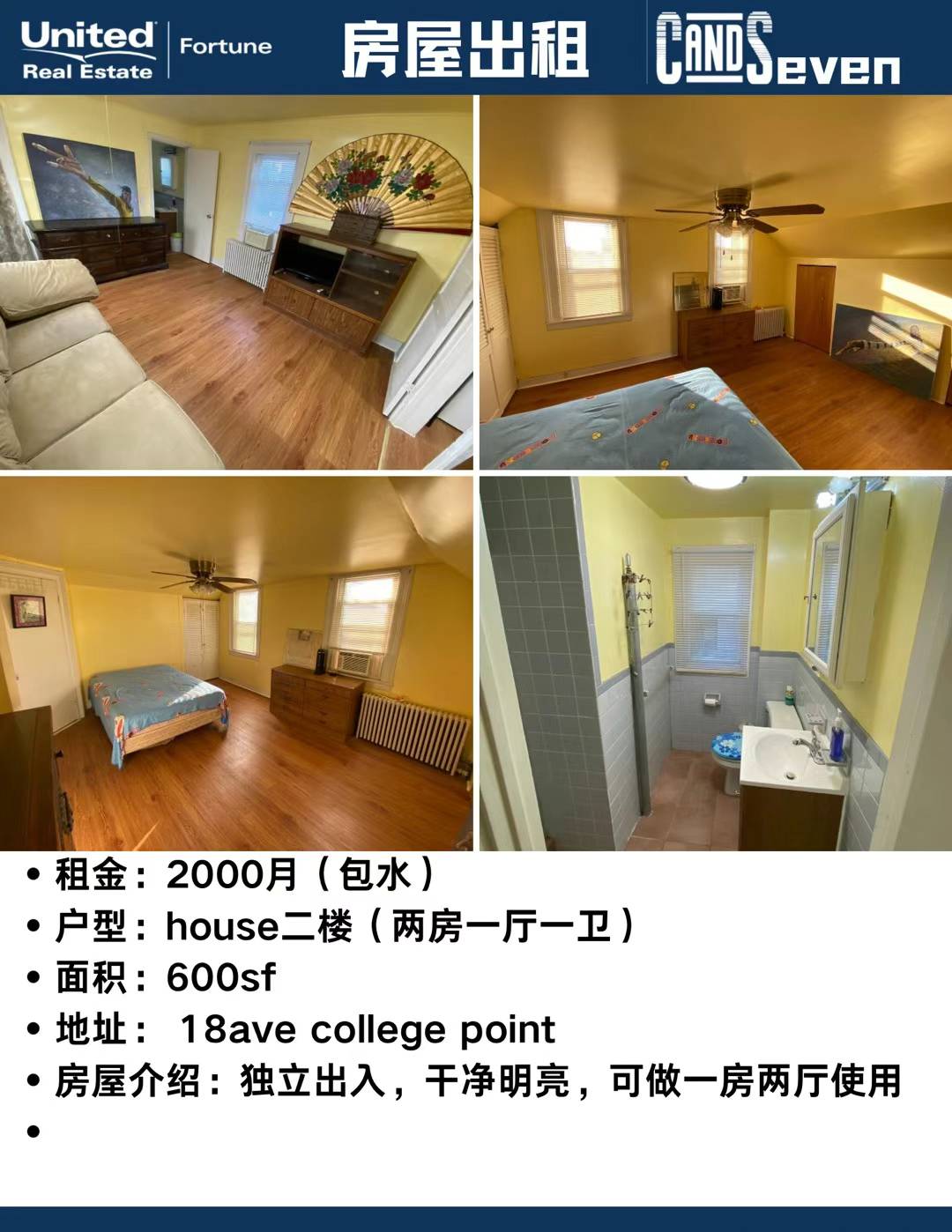 一房两厅一卫,可做两房一厅一卫 $2000/月(包水)917-856-5521