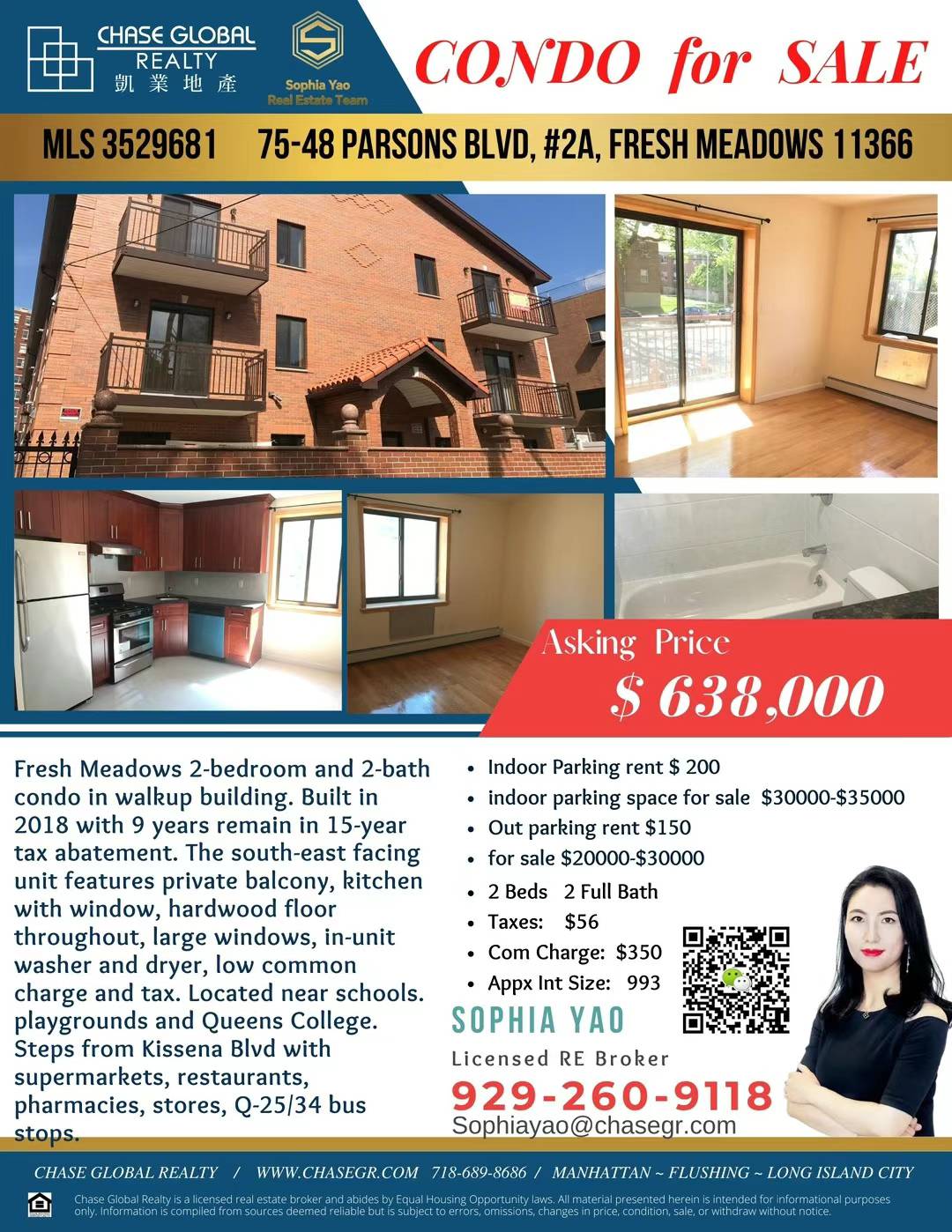 地段佳,周边配套全,交通便利,门口有巴士Q25、Q65、Q20B直达mainst。在二楼,地址: 75-48 parsons boulevard, #2A, Freshmeadow, NY 11366