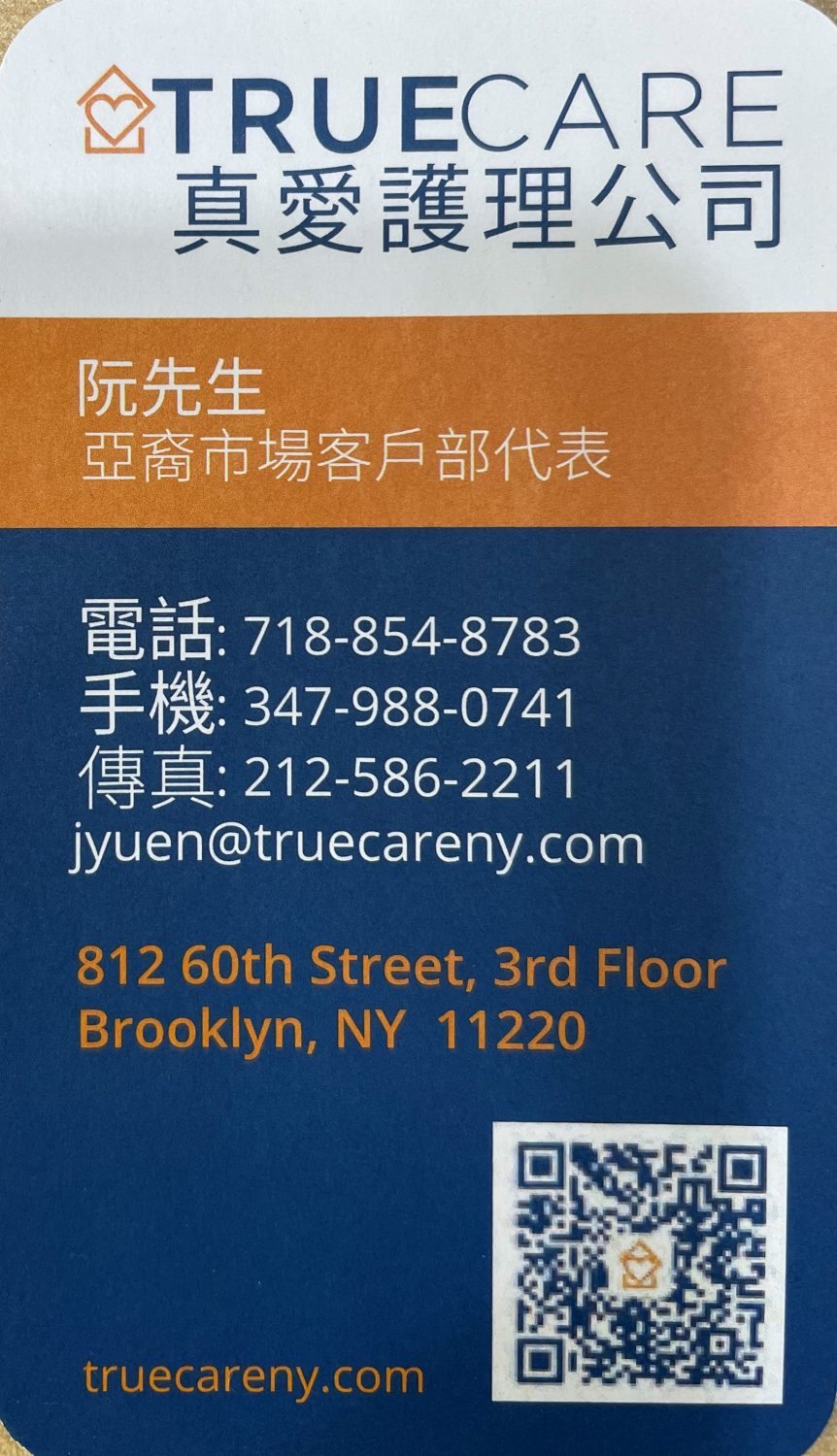 真爱护理公司/TRUECARE 纽约华人真爱护理阮先生
