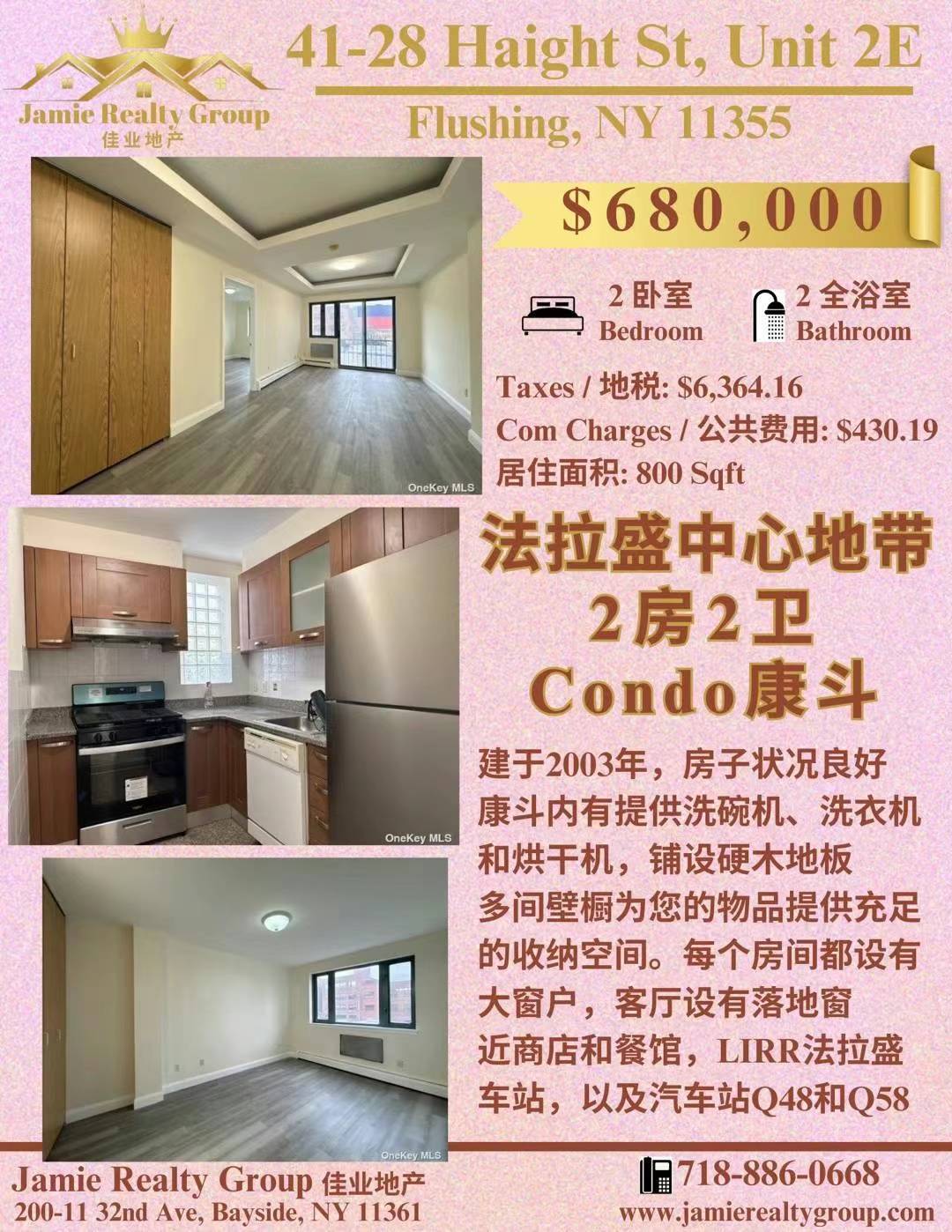 建于2003年,状况良好,单元内配有洗衣机和干衣机,硬木地板,低公共费用。靠近商店和餐厅,法拉盛LIRR车站以及Q48和Q58公交车站