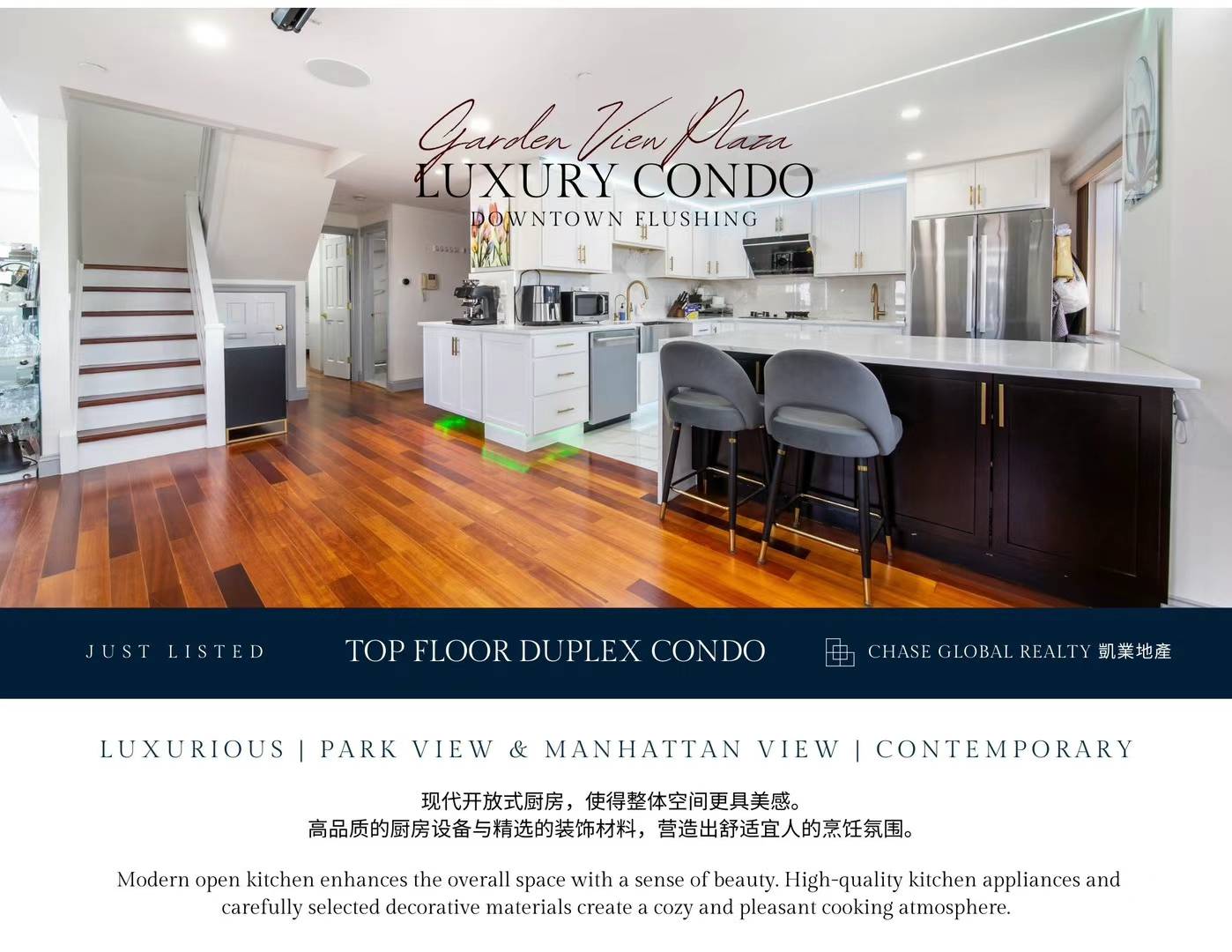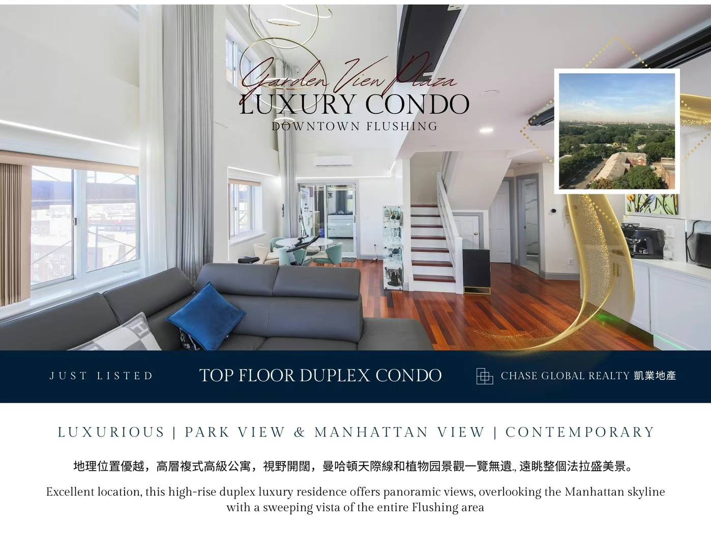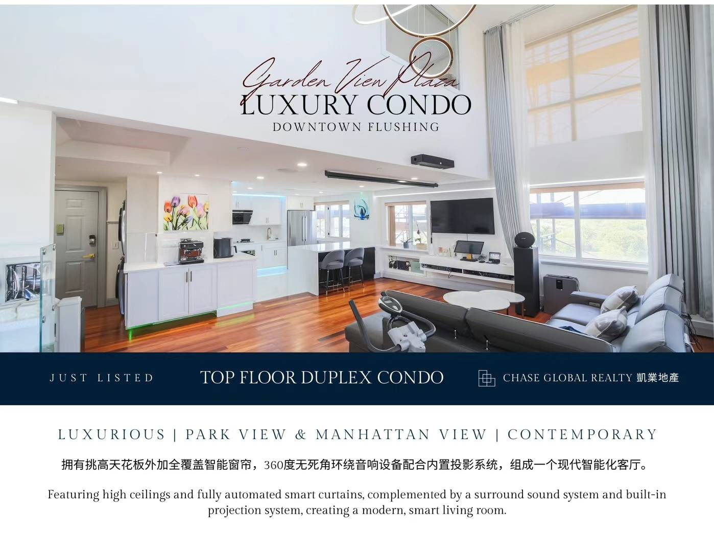 位于顶楼,可观看曼哈顿天际线等景观。高挑天花板,build-in音响,投影系统。近一切