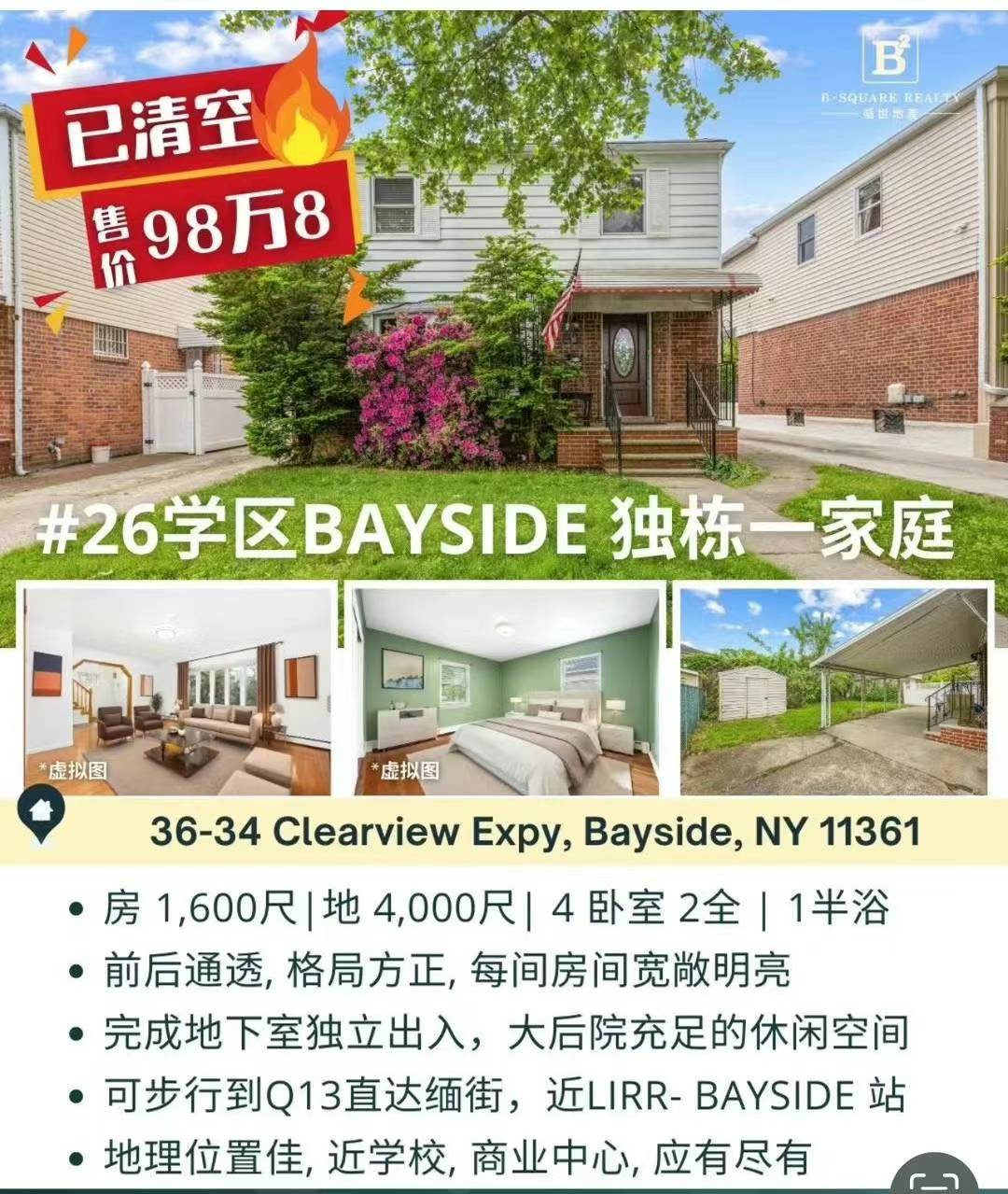 🚶♀️可步行到Q13直达缅街,近LIRR- BAYSIDE 站
