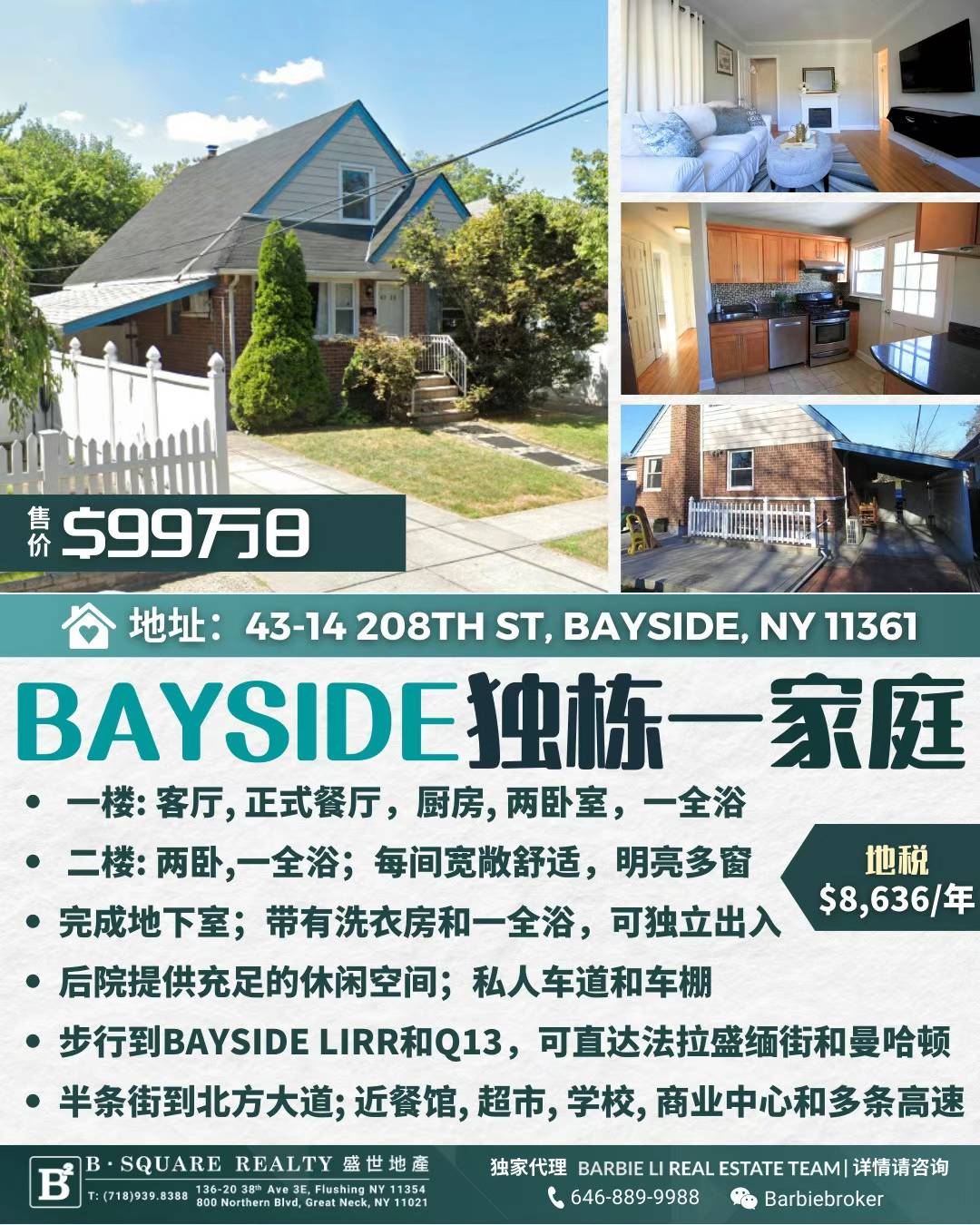 🚏步行到Bayside lirr和Q13,可直达法拉盛缅街和曼哈顿