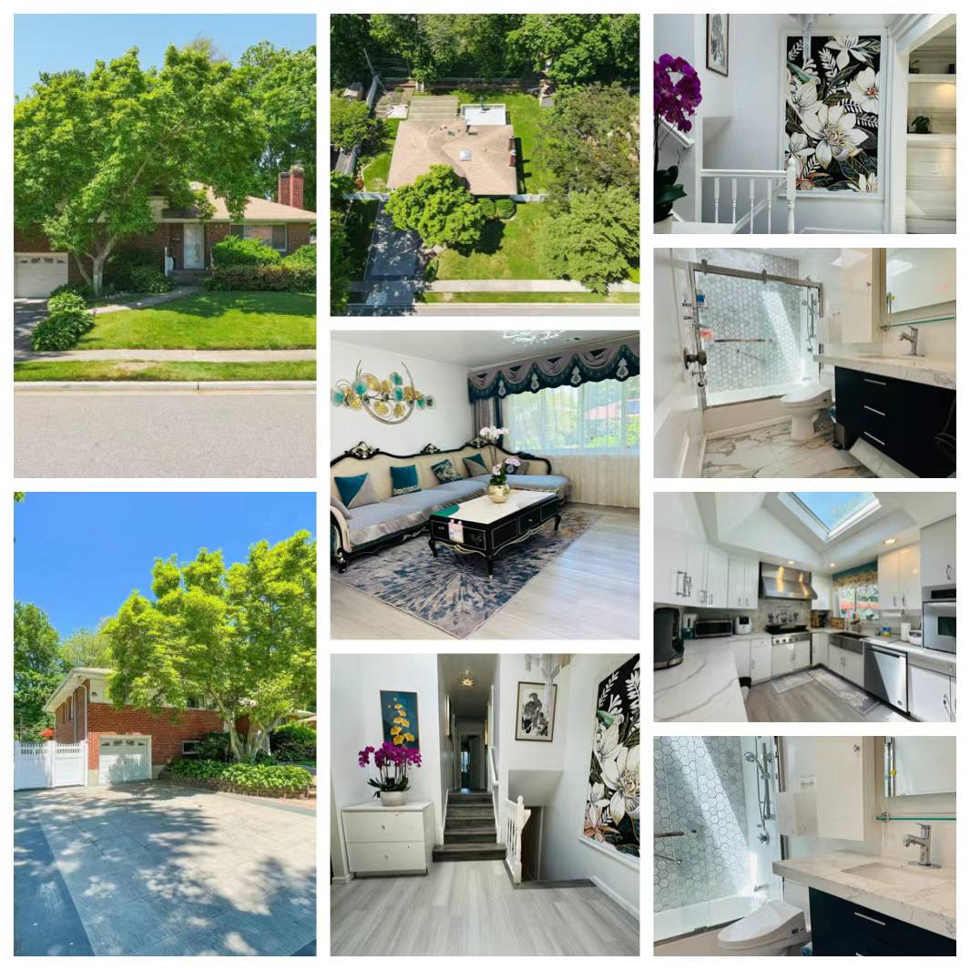 出售長島好學區Jericho brick split house, 全磚分層式房子,4臥3全浴,精裝修,設計感強,地大10320尺,室內約1800尺,帶多個天窗,采光極佳,finished basement, 後院設有多個高球green道,是高球者最愛,低地稅,叫價$129.8萬