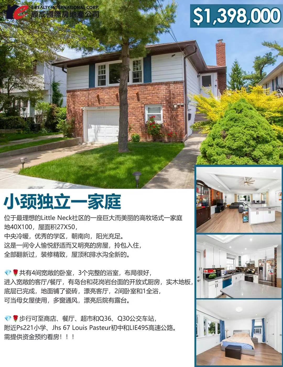 新上市位于最理想的Little Neck社区的一座巨大而美丽的高牧场式一家庭,地:40X100,