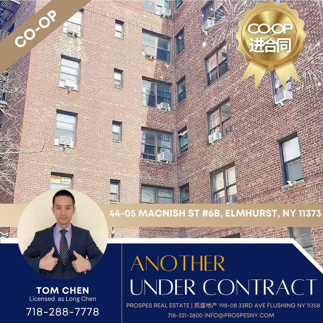 感谢我们的卖家选择凯盛经纪Tom独家代理他位于Elmhurst的Co-Op,Tom认真负责,专业可靠,顺利进合同!凯盛地产的经纪专业强服务佳!买家与卖家的满意是我们最高的追求,如果您有任何地产自住