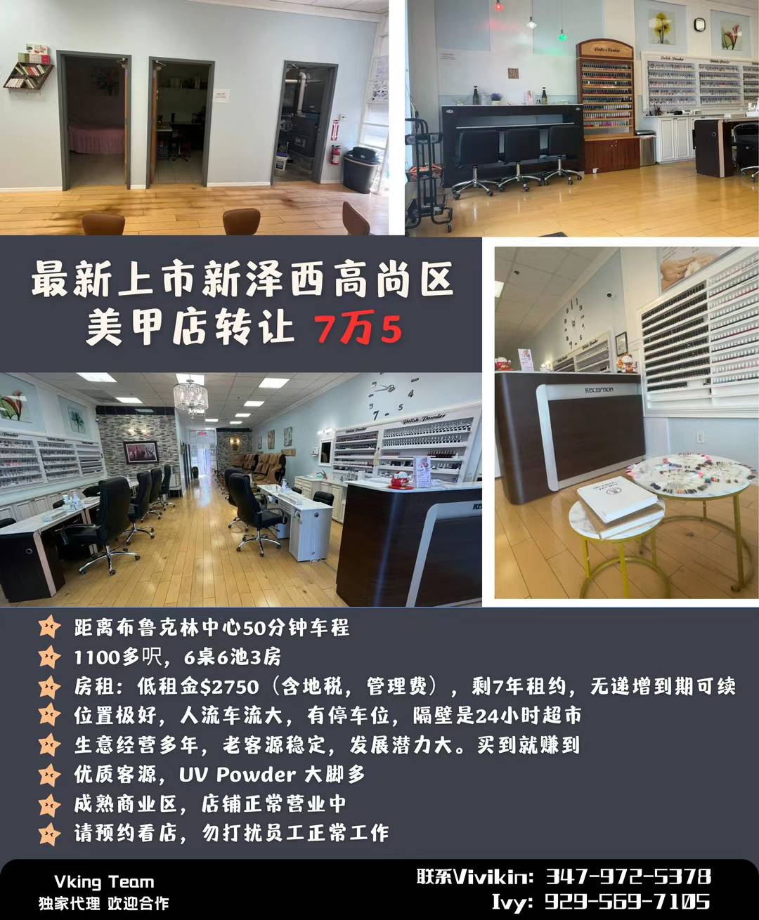 最新上市新泽西高尚区美甲店转让7万5!