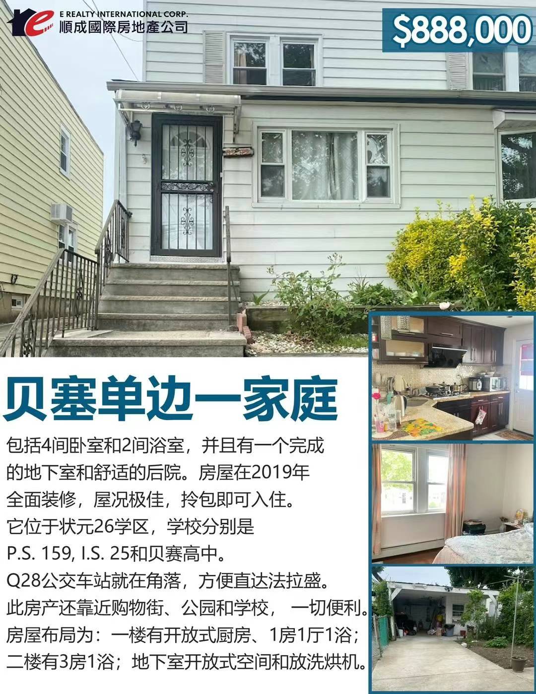 【Bayside 26学区单边1家庭】