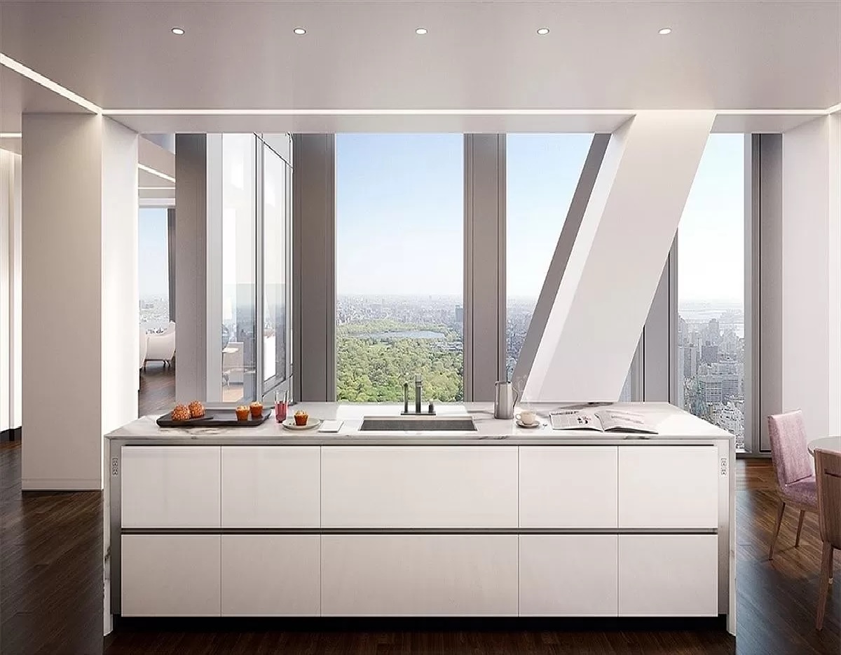 这座独一无二的复式顶层公寓堪称云端绿洲,共4卧3.5浴, 7973尺, 涵盖 53 West 53 的整个 76 层和 77 层,面积 7,973 平方英尺,可 360 度欣赏从中央公园到纽约标志性城市天际线的景观。这座精致的住宅设有四间卧室、三间半浴室、专用服务入口、私人内部电梯以及横跨中央公园、哈德逊河、东河流、城市天际线以及更远的地方。优雅的比例、宏伟的细节和高达约 21 英尺 8 英寸的天花板为世界著名设计师蒂埃里·德斯彭 (Thierry Despont) 搭建了令人惊叹的舞台,他利用许多通常为私人委托住宅保留的定制元素来打造住宅。这些博物馆品质的住宅饰面与普利兹克奖得主让·努维尔富有表现力的建筑相结合,创造出在规模和比例上都无与伦比的宏伟和优雅的独特空间,可通过引人注目的内部楼梯或私人内部电梯到达 77 层,气派非凡。主套房可欣赏北、南、东的全景,设有大型步入式衣柜和水疗式套间浴室,融合了传统与创意。主浴室采用抛光黑色圣洛朗大理石、高磨维罗纳石灰石和抛光波斯金色洞石,配有抛光镍 Dornbracht 固定装置,布置典雅,配有两个独立的定制雕刻梳妆台、铸铁 Lefroy Brooks 浸泡浴缸、独立蒸汽淋浴、辐射加热地板、带马桶和坐浴盆的私人卫生间以及亚麻衣柜。该层的另一间卧室可欣赏朝南和朝西的景色,并配有带窗户的套房浴室,浴室采用高磨砂维罗纳石灰石,配有抛光镍 Dornbracht 固定装置。从 Thierry Despont 与 Schwinghammer 合作设计的定制室内照明,到每间卧室的电动 Lutron 遮阳帘和额外的遮光帘,再到为整个家庭提供加湿和过滤的新鲜空气,我们没有忽视任何细节。$63,815,000