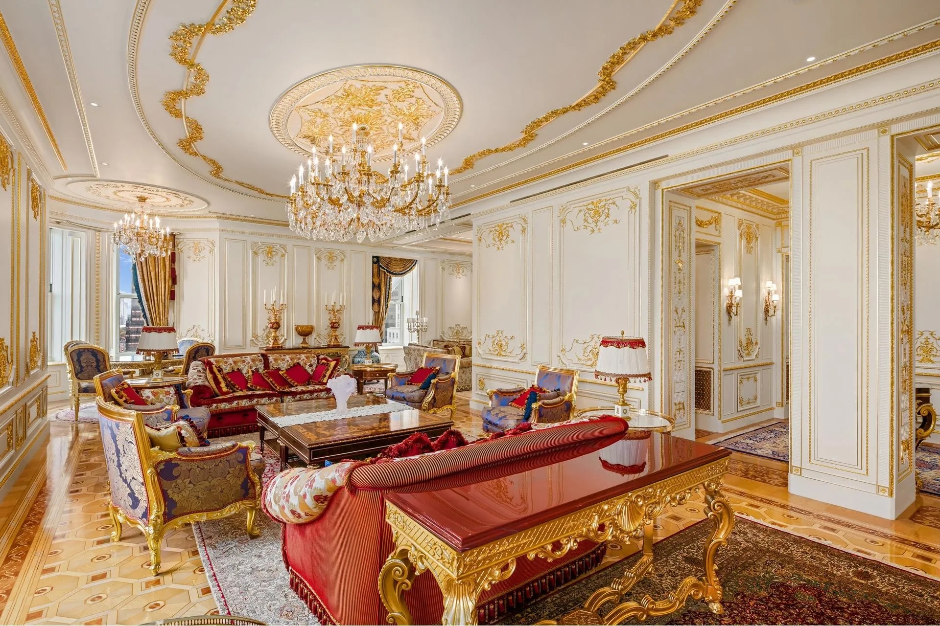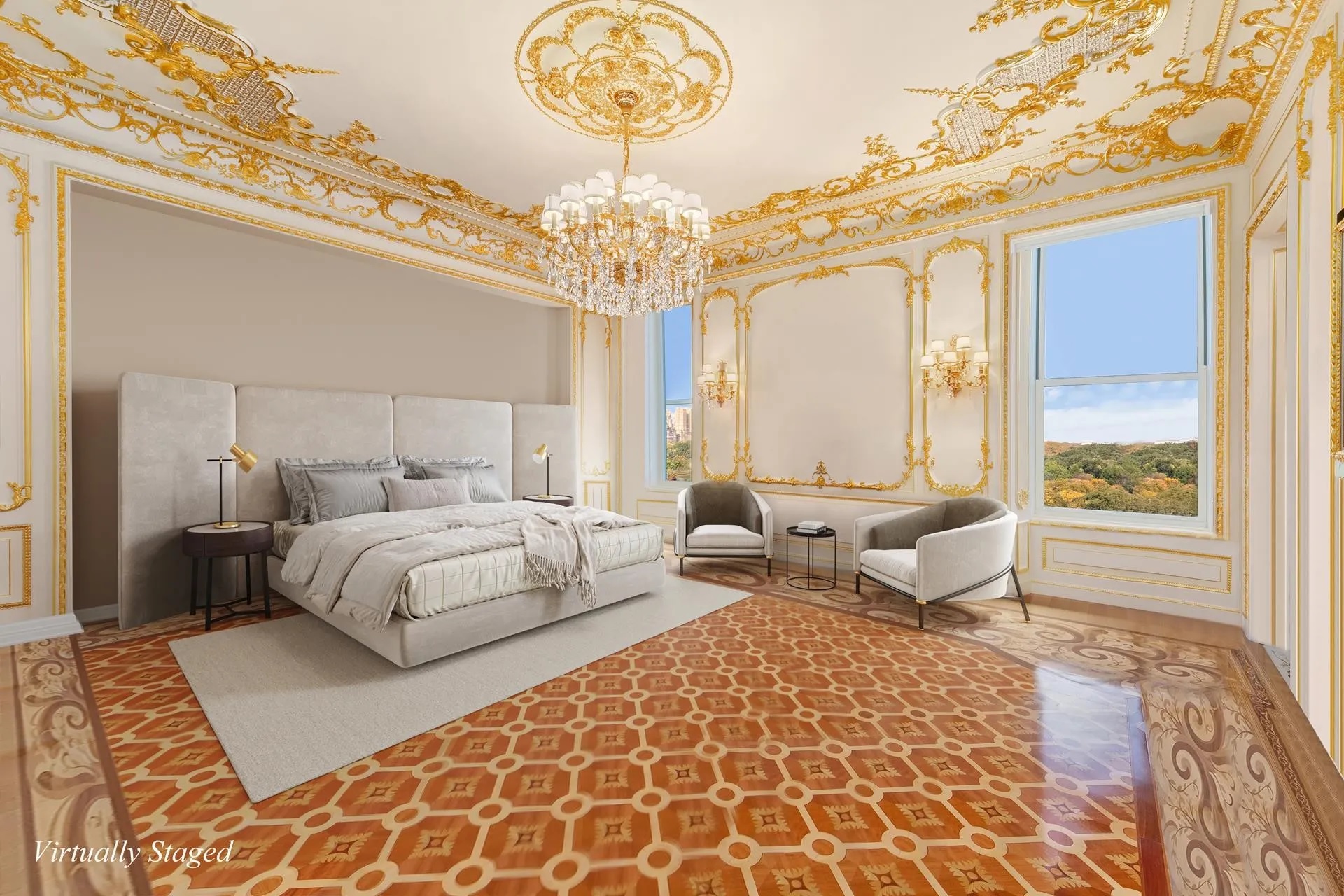 纽约曼哈顿豪宅康斗公寓出售 1007/09/1008 千载难逢的机会等待着那些追求终极奢华生活的人,位于曼哈顿最负盛名的中心地带,与中央公园仅一街之隔。这一独特的组合包括两套宽敞的住宅、公寓(1007 / 1009),共4卧4.5浴, 总面积为 5302 平方英尺,加上公寓 1008(穿过大厅的独立 782 平方英尺一居室公寓),总计 6084 平方英尺。这座住宅位于著名的广场住宅内,在这个标志性的地点创造了一个非凡的避风港。拥有四间卧室、四间半浴室和让人想起法国皇室的华丽内饰,这颗非凡宝石的每一面都散发着精致的气息,突出了最好的材料和饰面,从异国情调的石材到定制木制品、仿古造型和超大窗户,让自然光充满室内。进入后,优雅的门厅将您带入一间宏伟的大房间,该房间高达令人印象深刻的高度,展现出精美的细节,如镶板墙壁、水晶吊灯和令人惊叹的镶嵌地板。具有建筑意义的广场塔楼呈现出无可挑剔的开放城市和公园景观,辅以定制的内置设施、复杂的铁制品和带有内置酒吧的走廊。对于那些喜欢娱乐的人来说,宽敞、阳光充足的正式餐厅设有一个宏伟的舞台,舞台上装饰着华丽的柱子和俯瞰中央公园的宽敞窗户。附近,漂亮的木镶板书房和私人图书馆为智力追求提供了庇护所,而僻静的厨房则拥有顶级电器和充足的橱柜。然而,无可否认,该物业的亮点是宁静的主人套房。这个优雅的空间处处装饰着名牌壁纸和定制细节。主人套房拥有一间豪华的水疗式浴室,配有喷射浴缸、双水槽梳妆台和宽敞的步入式花洒淋浴间,所有这些均由令人惊叹的落地进口缟玛瑙包围。客房套房同样出色,每间都设有高档套间浴室和温馨的休闲区。 1008 号公寓 1008 号公寓是一间独立的超大单卧室公寓,俯瞰广场花园和庭院,非常适合客人或员工入住。布局提供了完美的开放的生活空间和终极隐私的融合。色彩丰富的墙壁装饰有皇冠造型、高高的踢脚板和嵌入式窗框,与胡桃木镶边的橡木地板形成了惊人的对比。通过中央门厅进入后,您将看到一间宽敞的大房间,其中包括一个额外的用餐区和曼哈顿最华丽的厨房之一。厨房配有 Nero Marquina 石材台面、马赛克 Calacatta 大理石后挡板和定制白色橱柜,辅以 Viking 和 Miele 的 Plaza 系列不锈钢电器。豪华的主卧室舒适地容纳一张特大号床和全套卧室套件。浴室的马赛克图案地板让人想起广场酒店大堂,还有由 LeFroy Brooks 和 Kohler 特别委托制作的固定装置和配件,其黄铜门把手上饰有标志性的双 P 徽章。大楼居民在中央公园南有一个单独的入口,可以享受广场酒店的五星级酒店式服务,包括 24/7 客房服务、每日客房清洁、使用广场酒店健身房和娇兰水疗中心。专属全职礼宾人员随时为您提供娱乐活动门票、餐厅预订,甚至可以在您的住所或 The Oak Room and Bar、Grand Ballroom 或 Terrace Room 安排私人派对。居民还可以享受自己的欧洲风格花园,花园内设有层叠水景和倒影池。住客大堂的双层玻璃门通向棕榈庭院、香槟酒吧、提供现场音乐的玫瑰俱乐部以及广场商店 $21,000,000