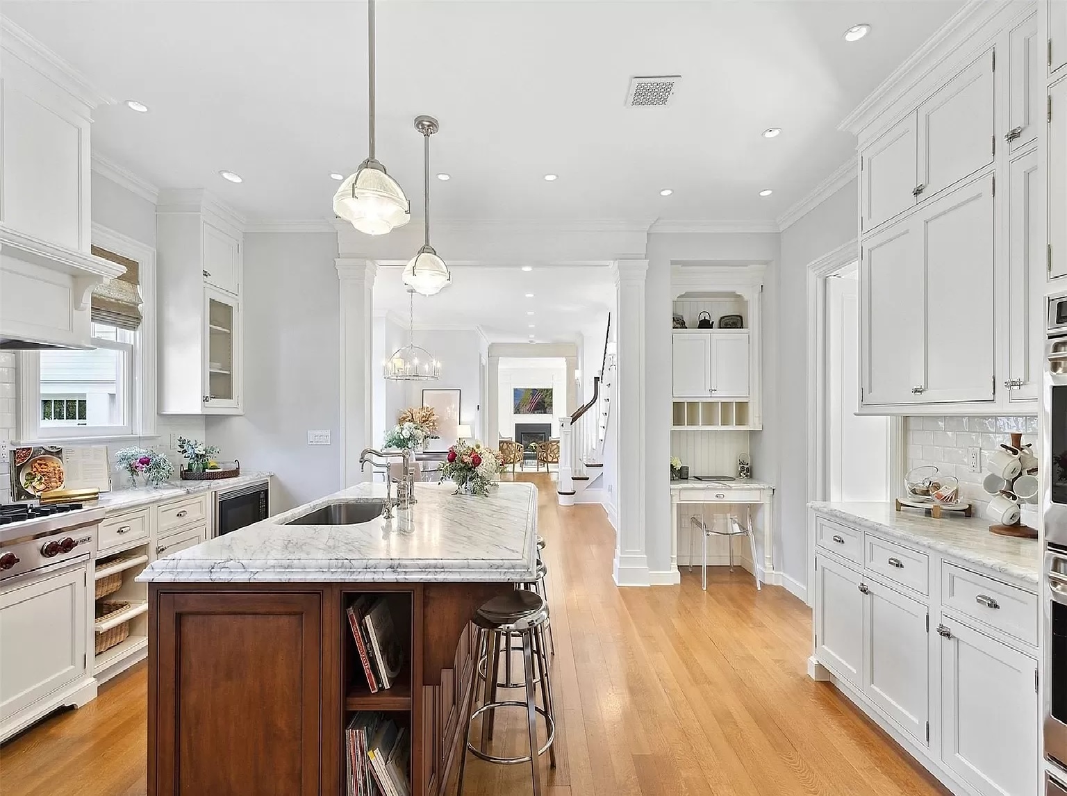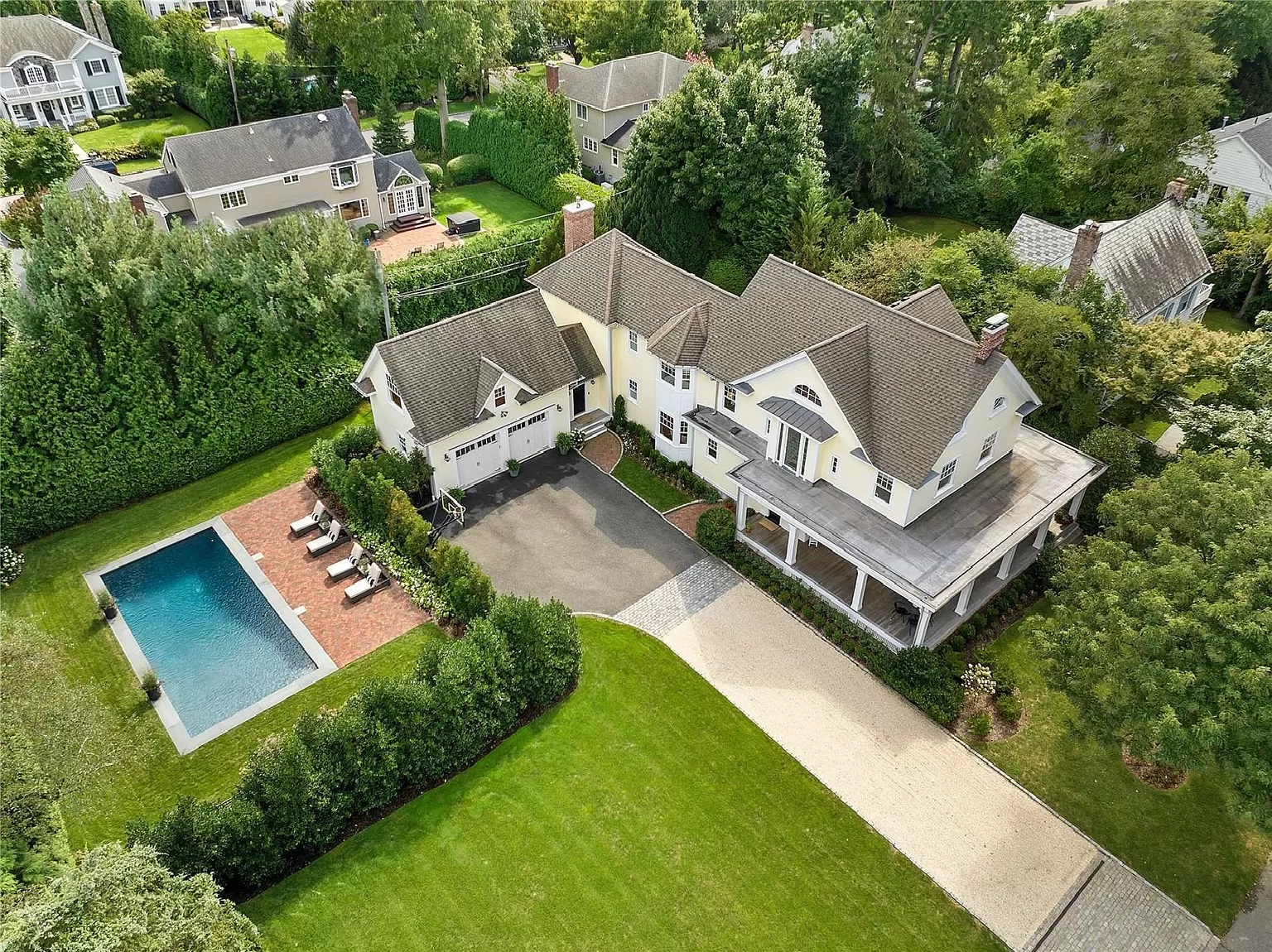 纽约长岛曼哈西特豪宅庄园出售 环绕式门廊殖民复兴杰作,位于双地块上。由罗德岛设计学院的著名建筑师盖伊·拉德·弗罗斯特 (Guy Ladd Frost) 从头开始重建,并以现代优雅和永恒的风格进行扩展。共7卧7浴, 房屋面积约 6,364 平方英尺,另加 1,600 平方英尺的下层,设有 7 间卧室、5 间全套浴室和 2 1/2 令人惊叹的浴室,采用 Walker Zanger Studio 的现代大理石设计。全新精致的私人拱形阁楼可用作卧室套房、行政办公室或瑜伽室,可欣赏修剪整齐的场地和游泳池的美景。壮观的加热盐水喷水池,配有宽敞的砖砌庭院和郁郁葱葱的私人环境,种植着成熟的娱乐植物。商业开发商/业主在这个战前殖民复兴重建的设计中发挥了重要作用。 这个令人惊叹的住宅的其他功能包括:整个定制木制品、配有 Wolf 电器和 Sub-Zero 冰箱的现代厨师厨房、10 英尺天花板、16 区水力和辐射热、8 区空调、400 安培电力服务、商用燃气锅炉、150 -加仑间接热水器和中央真空。 2 个洗衣区配备 3 台塔式洗衣机/烘干机。安全系统和全屋发电机已准备就绪。新的 1,600 平方英尺下层设有带酒塔的茶点厨房、冰箱和洗碗机、娱乐中心、媒体、健康区、充足的衣柜和存储空间以及洗衣房。 2.5 辆车的附加加热车库,配有宠物美容站。 Plandome 球场和海洋馆设有网球、海滩和停泊权 $6,549,000
