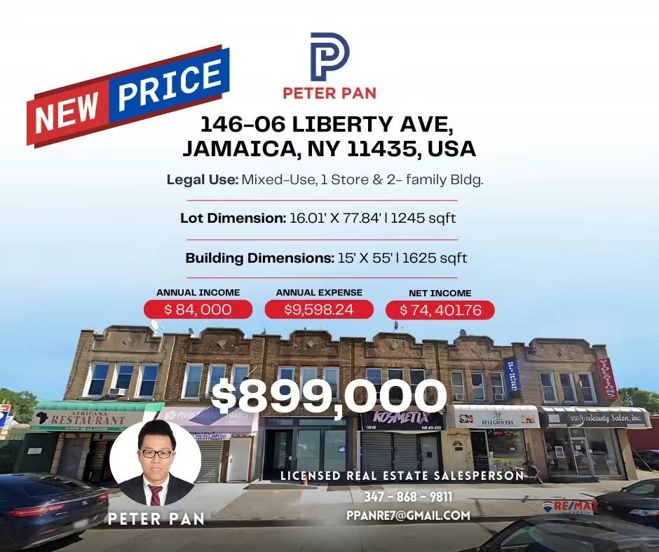 牙买加房屋出售 Jamaica NY新价格! 兩家庭一店在146-06 LIBERTY AVE, JAMAICA, NY 11435, USA 價格$899,999。有興趣請打347-868-9811