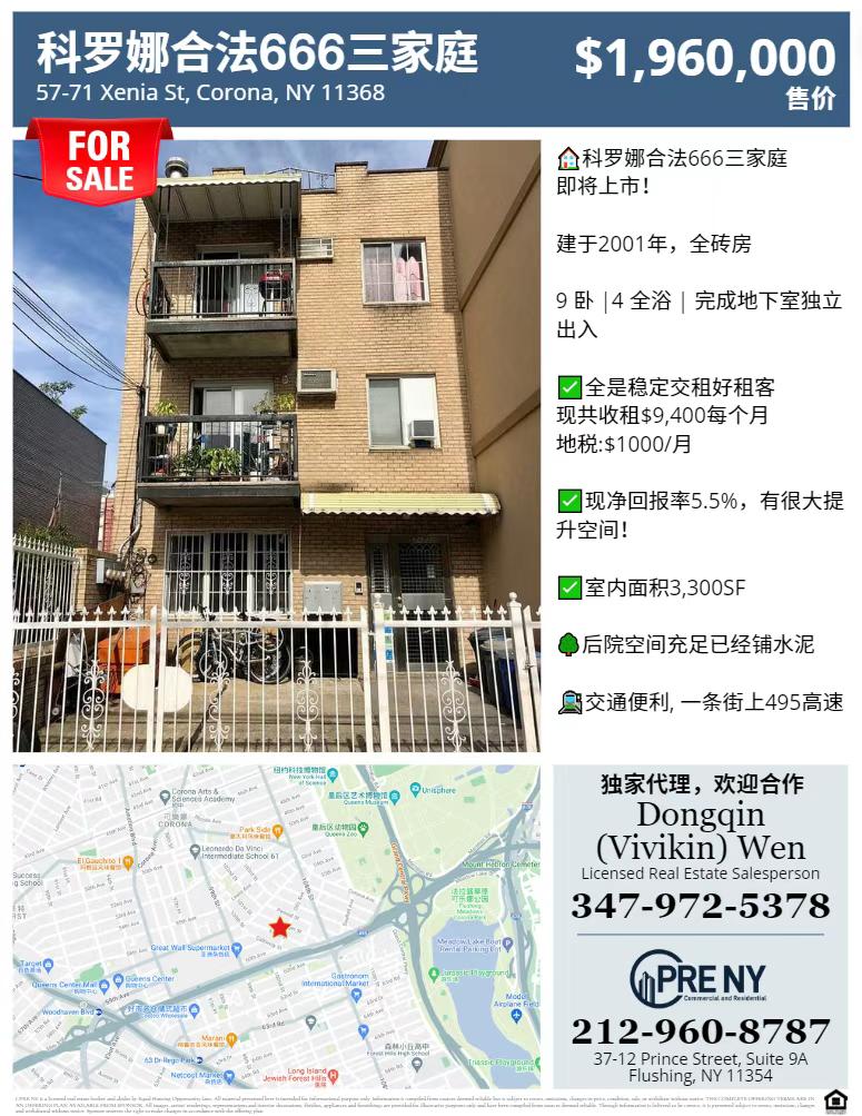 可乐娜房子出售Corona NY🏠科罗娜合法666三家庭,即将上市