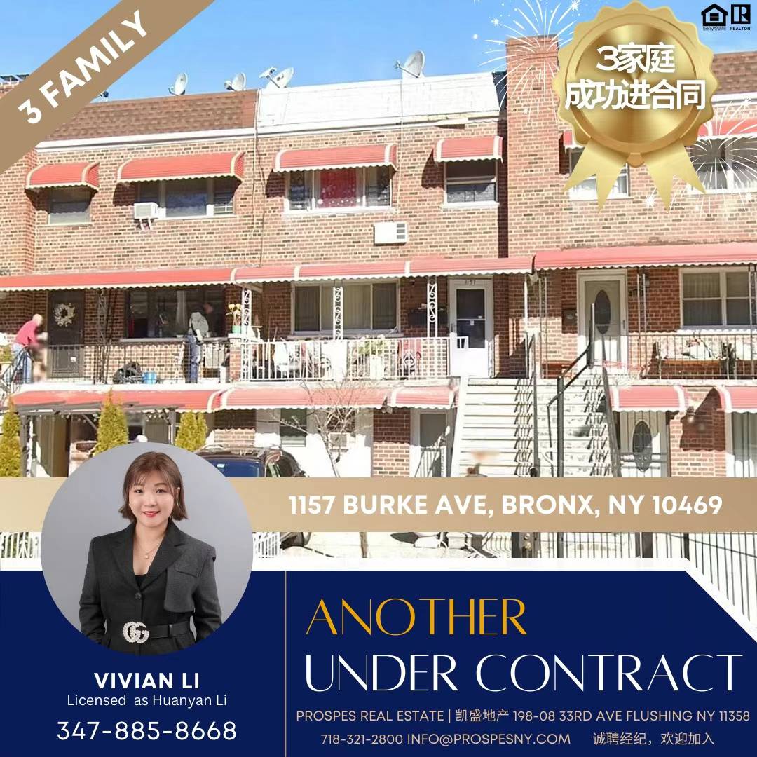 💪🏼💪🏼感谢我们的卖家选择凯盛经纪Vivian帮助他出售位于Bronx的3家庭,Vivian认真负责,专业可靠,顺利进合同!