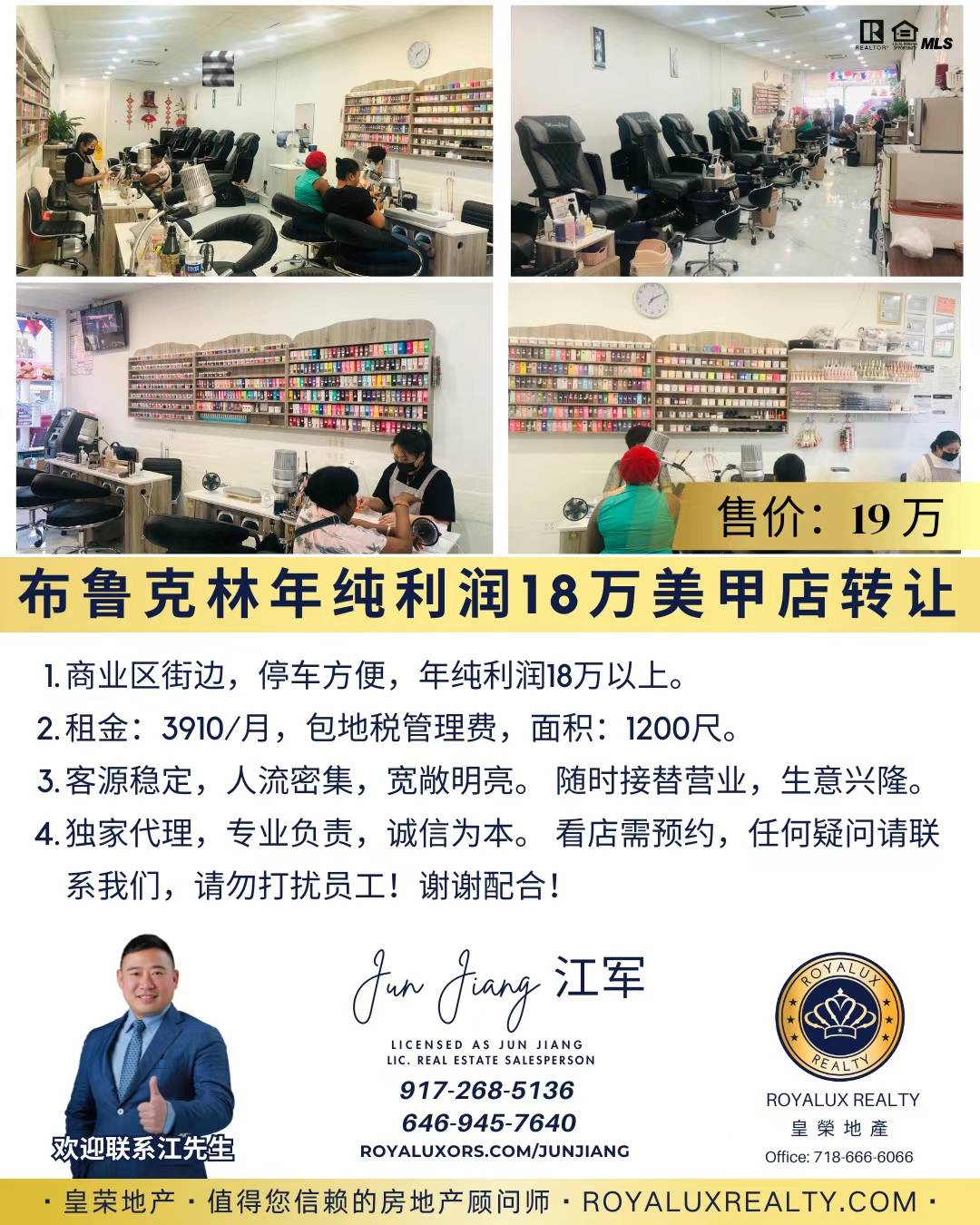 🥇布鲁克林年纯利润18万美甲店转让!售价19万