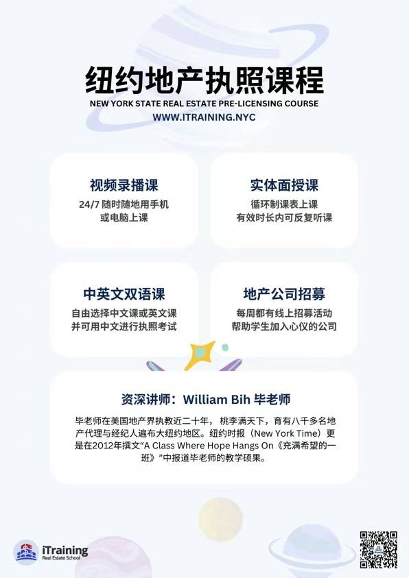 iTraining提供网络视频课程,为老师录制好的视频课程,可以随时随地观看视频上课;同时我们也提供面授课程,面授课教室在法拉盛王子大厦,上课时间为每周一至周四晚上6-9点。所有课程都可以随时报名随时开始上课哦