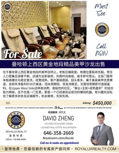 ![]() | 法拉盛中心黄金地段的成熟美甲美睫店现整店出售,这家店已有12年经营历史,拥有稳定客源与完善硬件设施,室内面积约 950平方尺,空间布局合理、动线清晰,非常适合直接接手运营或升级为更大规模工作室。租金仅 $8,000/月(含地税),投资回报稳健,是创业者、投资者和美容行业专业人士的理想选择。店铺优势… By 匿名 on | 🏭美国各类生意转让出租🔥 | By 匿名 on |